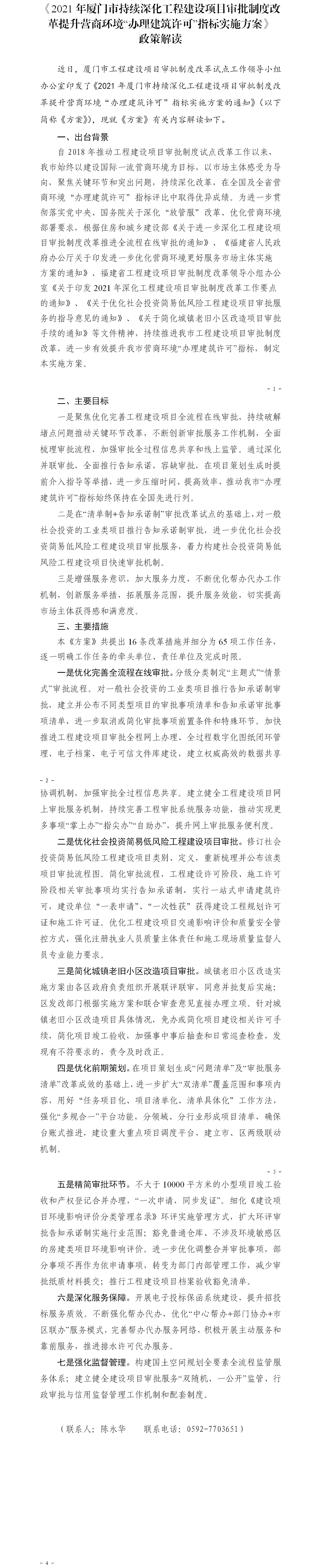 《2021年厦门市持续深化工程建设项目审批制度改革提升营商环境“办理建筑许可”指标实施方案》 政策解读