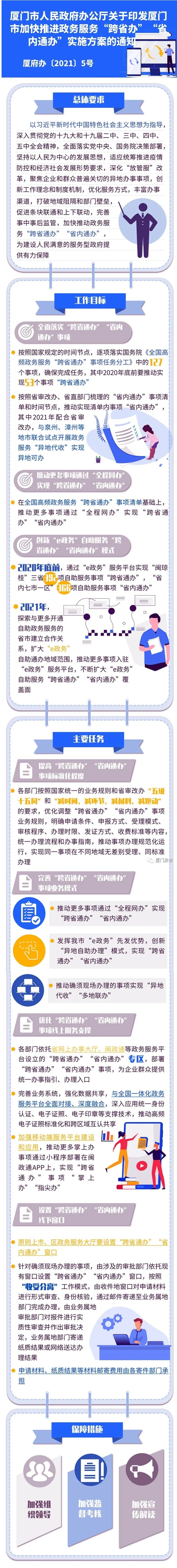 厦门市人民政府办公厅关于印发厦门市加快推进政务服务“跨省通办”“省内通办”实施方案的通知(厦府办〔2021〕5号)